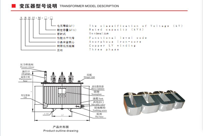 變壓器可把電網電壓變換成係統或負載所需要的電壓,實現電能的傳遞與分配。本變壓器可取代矽鋼片鐵心的變壓器而廣泛使用於戶外配電係統。本產品的大量入網運行可取的良好的節能效果並可減少對大氣的汙染。本產品特別適用於電能不足和負荷波動大以及難以進行日常維護的地區。由於變壓器采用全密封結構,絕緣油和絕緣介質不受大氣汙染,因而可在潮濕的環境中運行,是城市和農村廣大配電網絡中理想的配電設備。
