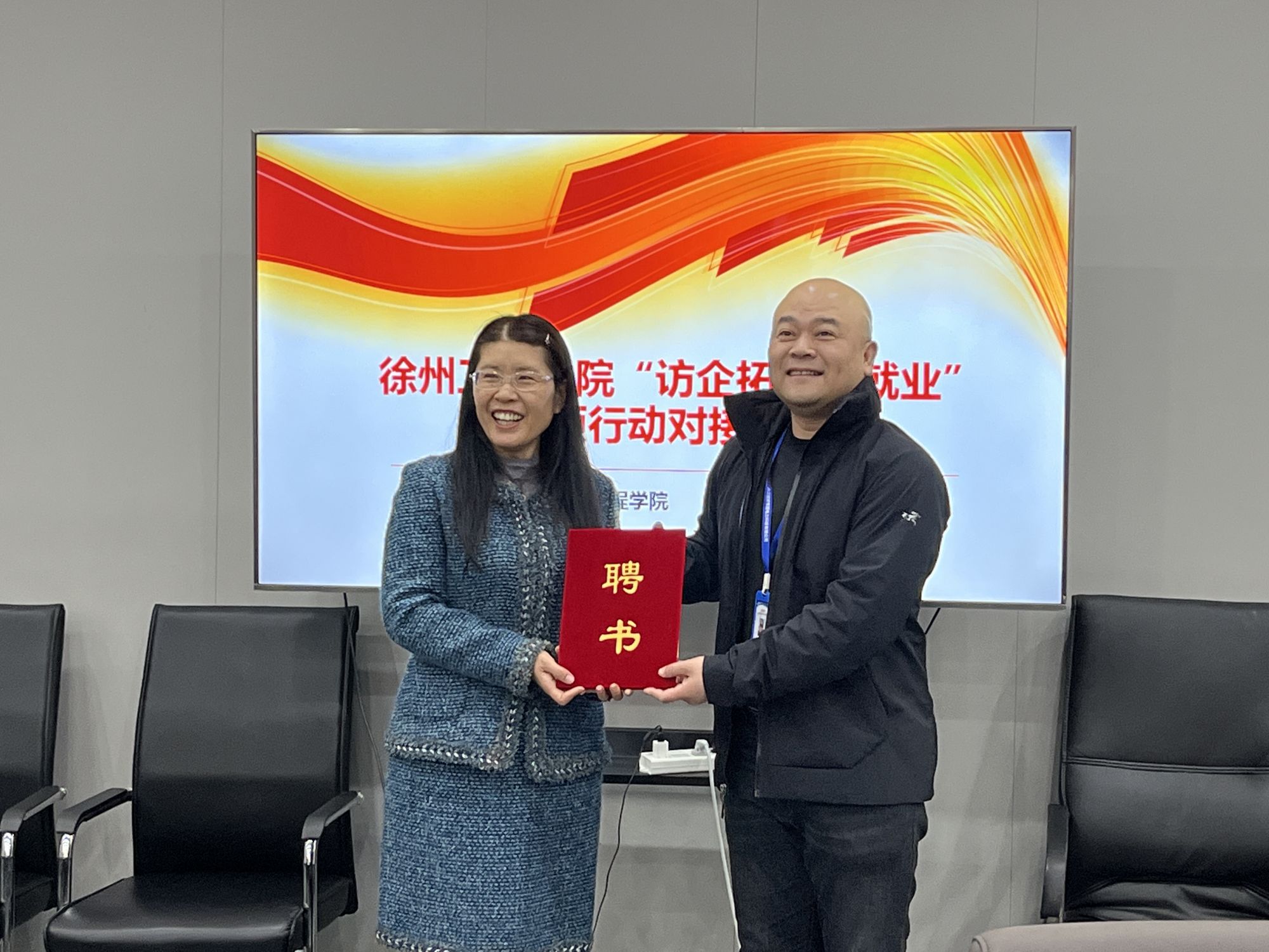 圖二:管理工程學院院長向万象城AWC科技董事長授予徐州工程學院管理工程學院企業(ye) 導師 圖三:校企合作人才培養(yang) 基地和校外實踐基地授牌儀(yi) 式