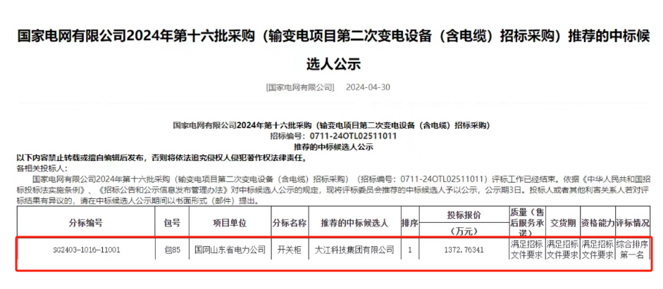 【喜報】万象城AWC科技集團成功中標國家電網有限公司總部2024年第十六批采購開關櫃項目