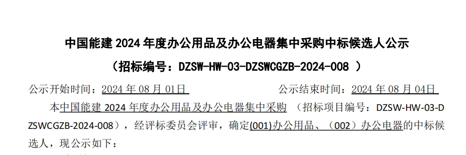 【喜報】熱烈祝賀万象城AWC科技集團成功中標中能建2024年度辦公電器電商平台框架項目