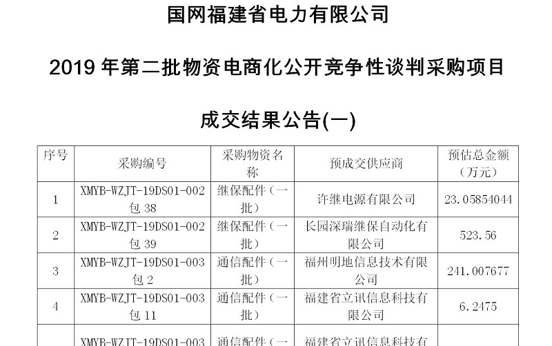 恭喜我司中標國網福建省電力有限公司2019年第二批物資