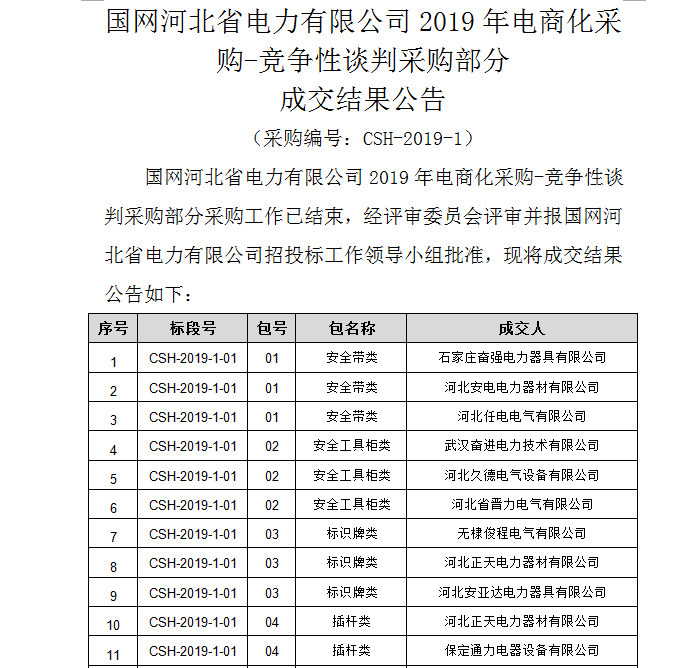 恭喜我司中標國網河北省電力有限公司2019年電商化采購