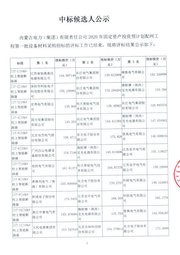 恭喜我司中標內蒙古電力(集團)有限責任公司2020年固定資產投資預計劃配網工程第一批設備材料采購