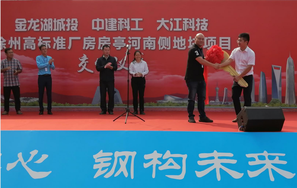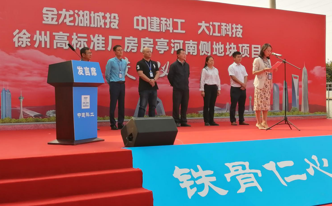 中建科工徐州經開區房亭河南側(ce) 地塊項目經理桂丞介紹領導並致歡迎詞