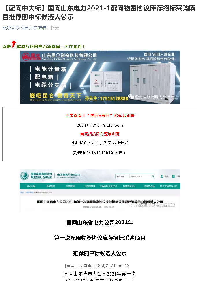 恭喜我司中標國網山東電力2021-1配網物資協議庫存招標采購項目